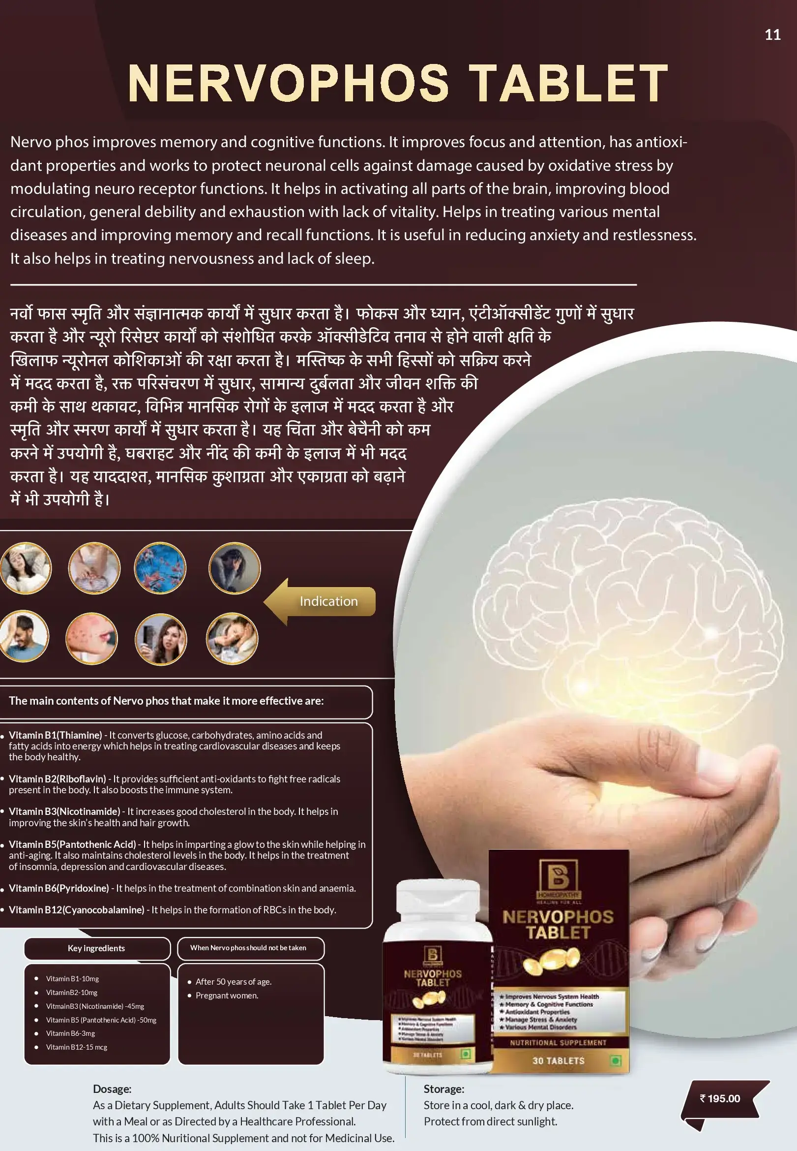 Nervo phos improves memory and cognitive functions. It improves focus and attention, has antioxi- dant properties and works to protect neuronal cells against damage caused by oxidative stress by modulating neuro receptor functions. It helps in activating all parts of the brain, improving blood circulation, general debility and exhaustion with lack of vitality. Helps in treating various mental diseases and improving memory and recall functions. It is useful in reducing anxiety and restlessness. It also helps in treating nervousness and lack of sleep.